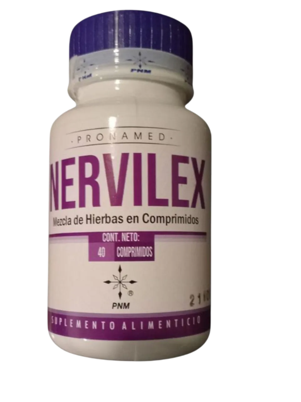 NERVILEX es un relajante y tranquilizante natural en comprimidos, diseñado para apoyar el equilibrio emocional y mejorar el descanso. Su fórmula incluye una sinergia de plantas tradicionalmente utilizadas por sus propiedades calmantes: