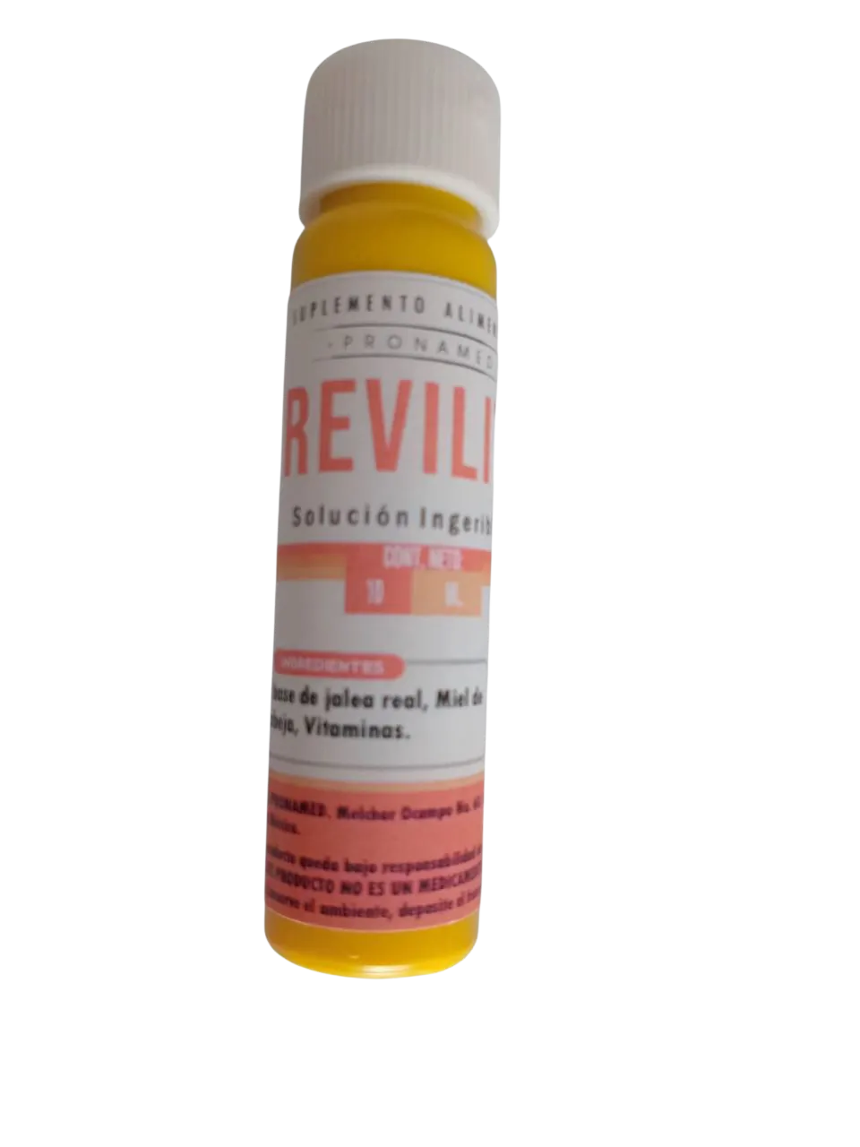 REVILIT es una solución bebible en ampolletas a base de jalea real, vitaminas del complejo B, vitaminas antioxidantes y miel, diseñada para brindar un efecto tonificante, euforizante, revitalizante y antianémico. Su presentación líquida permite una absorción inmediata y efectiva.